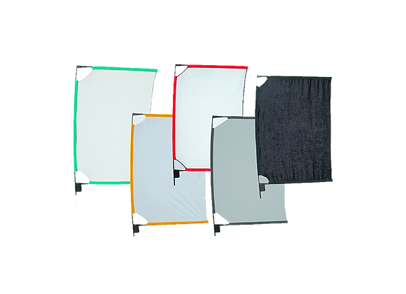 ● Kit composé d’un cadre pliant de 65 x 95 cm, adapté aux besoins de diffusion et de réflexion de la lumière sur les plateaux de tournage.
